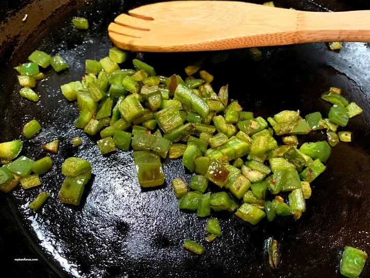 • Sauté the jalapeños over medium high heat until tender and slightly charred.