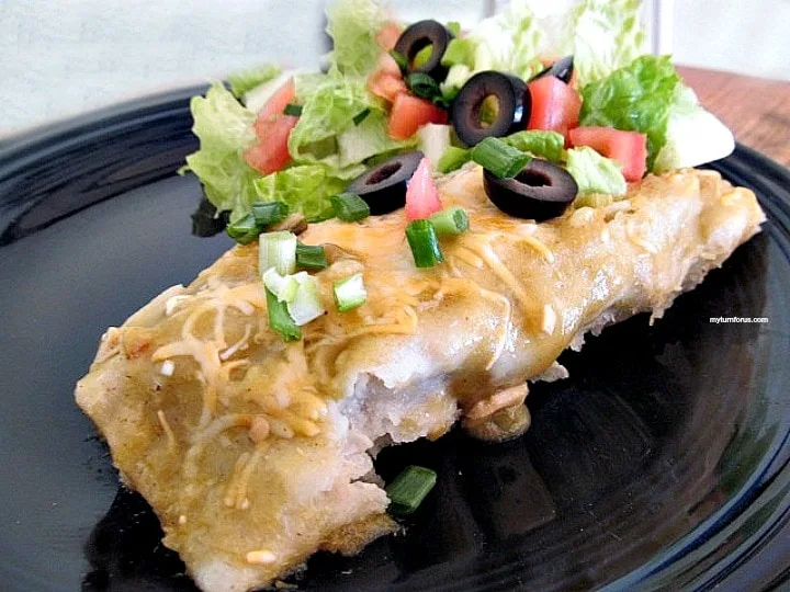 Click HERE to save this recipe for chicken enchiladas with green sauce to Pinterest