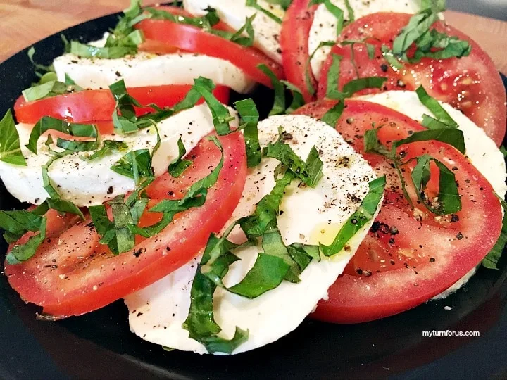 Click HERE to save this Easy Caprese Salad to Pinterest