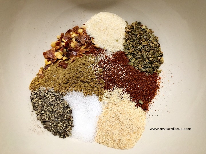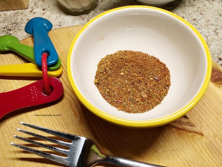 Mix all the Mexican spice ingredients with a dinner fork or small whisk. Use this entire recipe for 1 lb of ground beef or if you double or triple it use about 2 Tablespoons for each pound of beef. But tacos are not the only recipe where I use these Mexican spice recipe. We use it on chicken, pork and steaks.