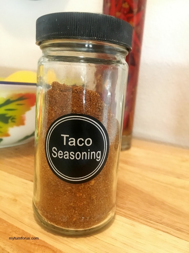 I didn’t throw anything out, I just started NOT buying certain blends or mixes. And one mix I don’t buy is Taco Seasoning, no reason to spend extra money on those mixes when I have all the ingredients already on hand. And if we get in the mood for Tacos, I don’t have to check to see if I have the mix.