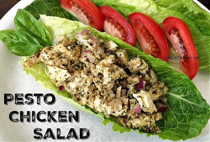 Store bought pesto is delicious but homemade pesto with fresh basil from the garden is amazing. And we are watching our carbs this month and pasta is not on our menu. So we have came up with a delicious twist on chicken salad, a basil pesto chicken salad. It makes the bet chicken pesto wrap in lettuce.
