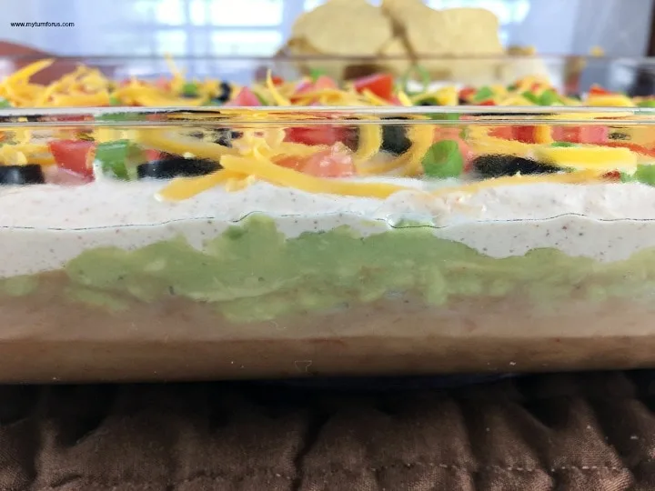A Taco Dip or Nacho Dip with seven layers of Mexican flavors