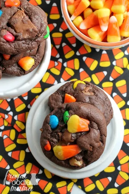 Halloween Stash Devil's Food Cookies are the perfect way to use up that leftover trick or treat candy