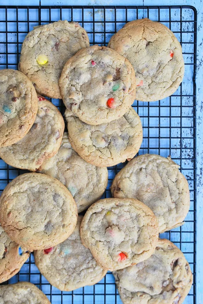 Chocolate chip cookies with crispy rice cereal and chopped Kit Kat candy bars