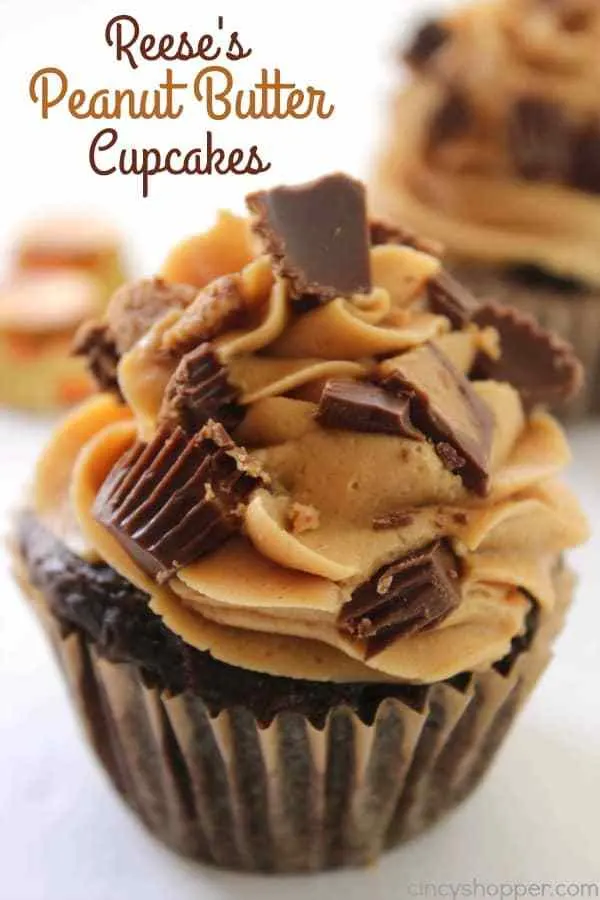 A delicious chocolate cupcake stuffed with a Reese’s Miniature then topped with a creamy peanut butter frosting.