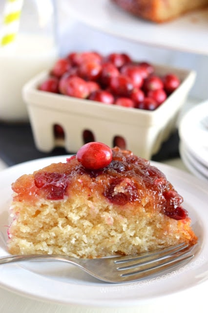 A perfect coming together of sweet and tart with fresh cranberries in a upside down cake.