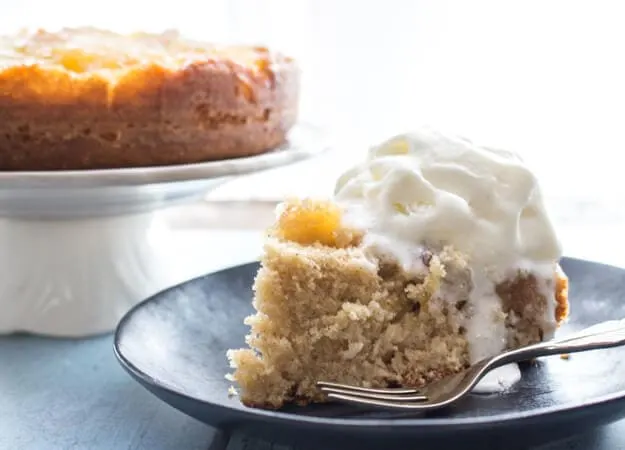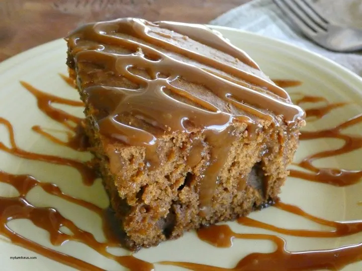 This is a old fashioned vintage cake that is served warm topped with a homemade brown sugar caramel glaze.Â