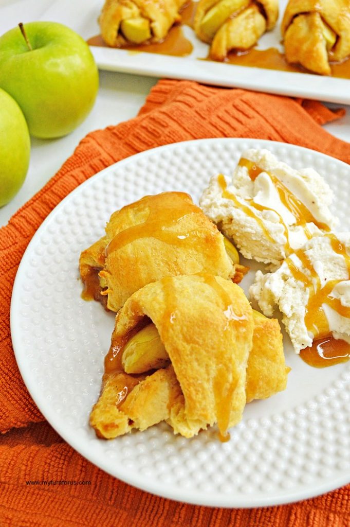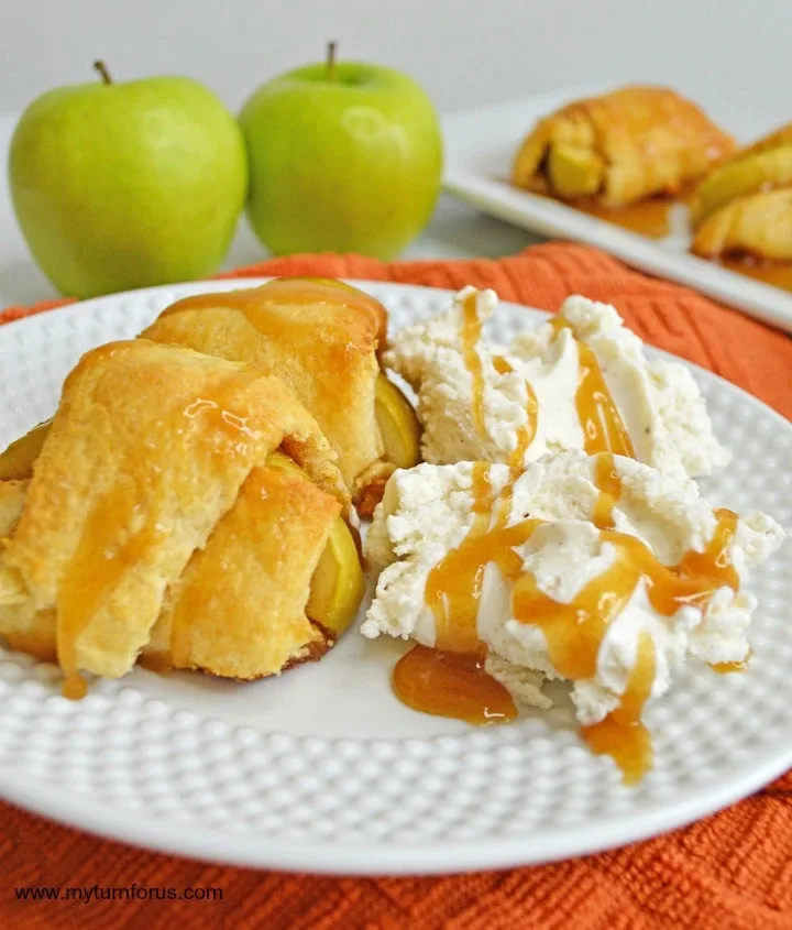 Cinnamon Apple bites that’s made from crescent dough, apple slices, and cinnamon.