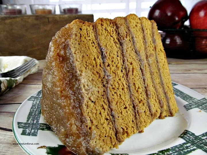 It’s from an old-fashioned stack cake recipe that uses sorghum molasses in the batter and it’s frosted with a spiced applesauce mixture.