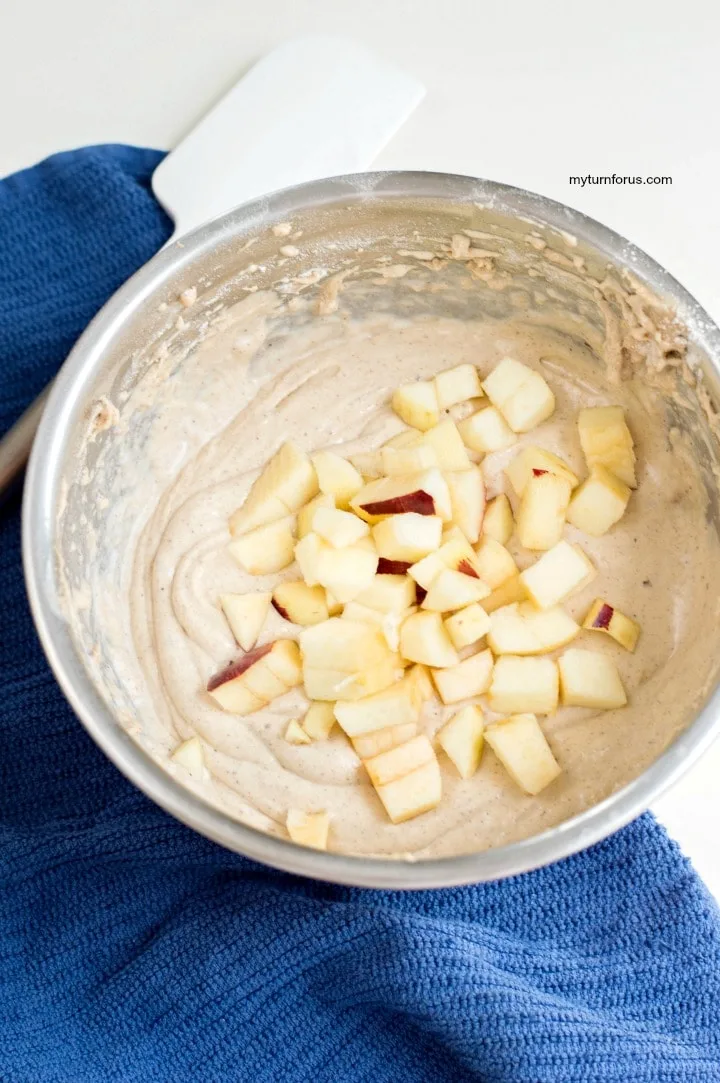 - Add apple cubes and fold into batter.