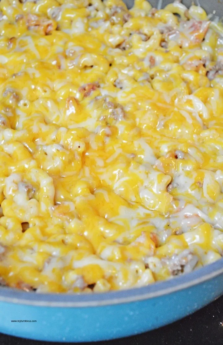 Click HERE to save this Cheeseburger pasta recipe to Pinterest