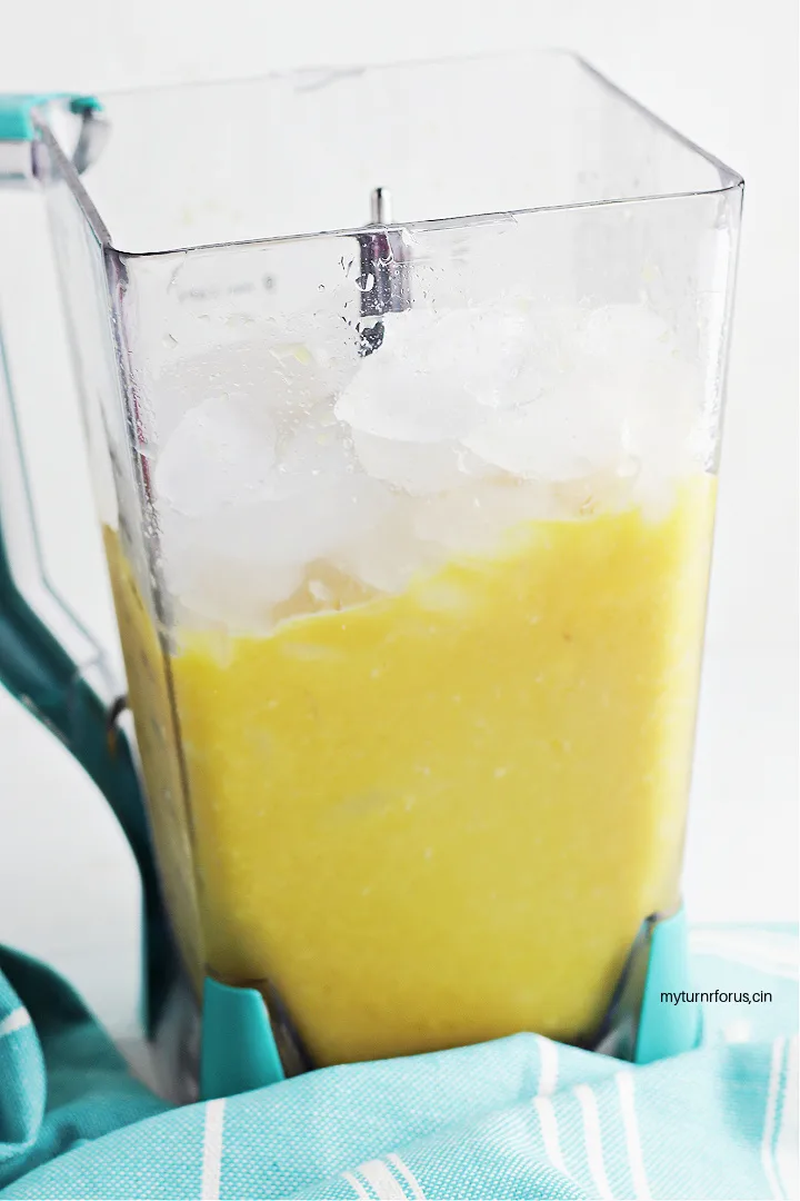 Add the ice to the blender and blend until the ice is completely crushed and has a slushy texture.