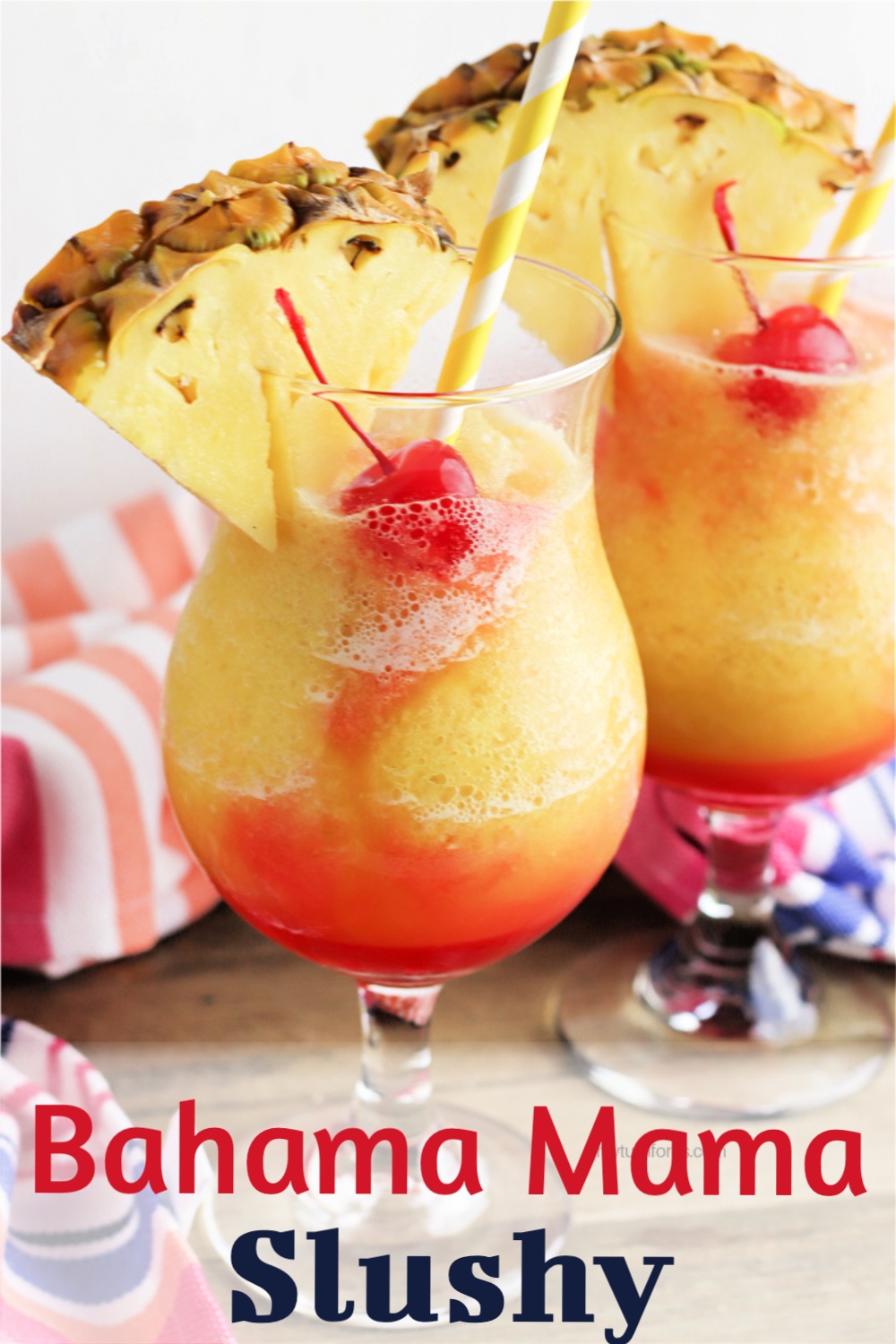 - Garnish your Bahama Mama Slushy with a slice of pineapple, a maraschino cherry and a festive straw.