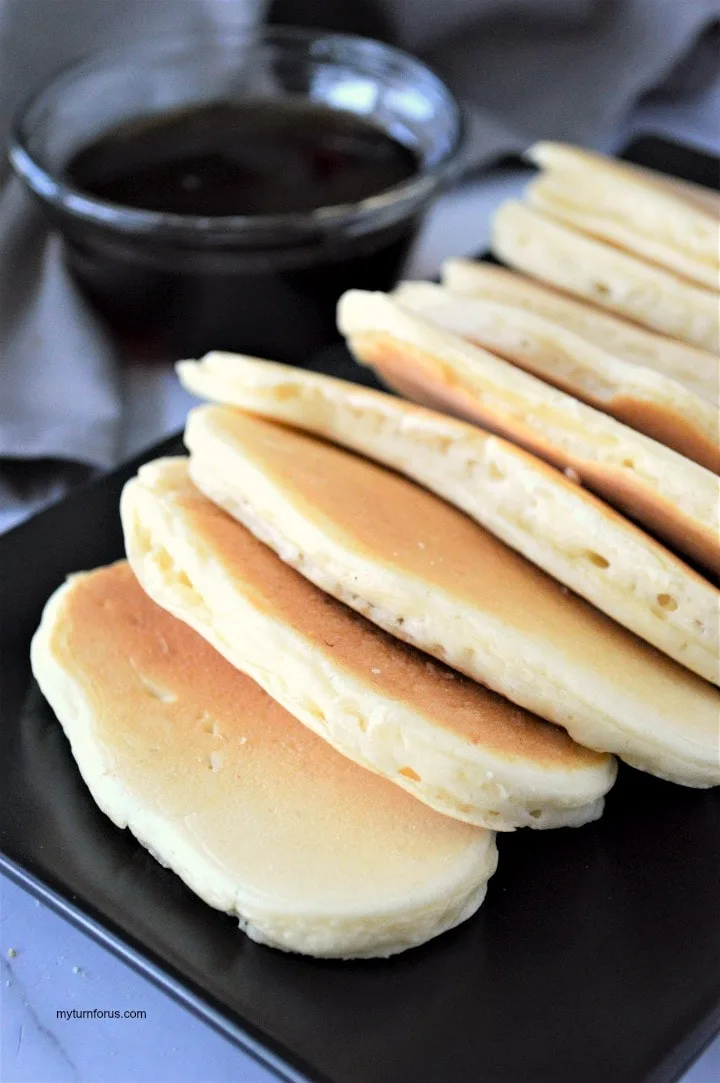 Remove them from griddle and let cool, slightly. Pour the maple syrup into individual dipping bowls and serve alongside these delicious banana pancake dippers
