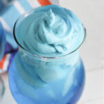 Last fall and winter the Dalgono coffee craze was happening. Not only was coffee whipped but also hot chocolate had that fun delicious whipped consistency. Now this summer we are seeing whipped lemonade and whipped kool-aid for kids. If you are wondering how to make this popular beverage, you are at the right place. You can make this blue whipped drink with a couple packages of kool-aid and heavy whipping cream.