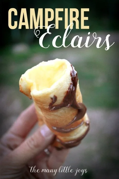 This is one of the ultimate campfire desserts,  Campfire Eclairs – By The Many Little joys.  She explains how to roast the dough over the campfire and fills it with that creamy goodness that we love. Â