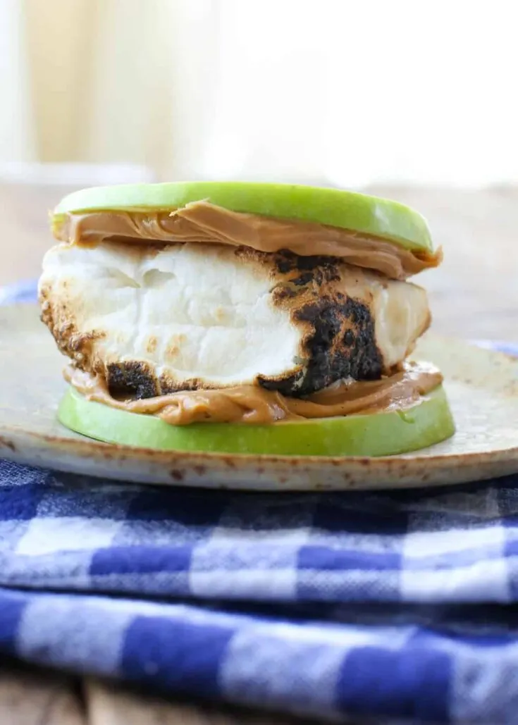 We all love s’ more variations and these Green Apple Smores – by Barefeet in the Kitchen sound so tempting. Tart apple slices with creamy peanut butter with roasted marshmallows need to be on our camping checklist menu.Â