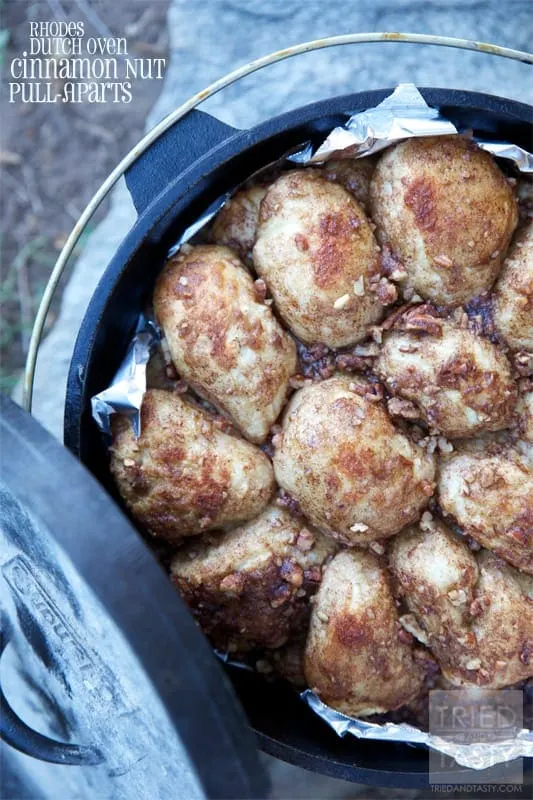 You need to make these Dutch Oven Cinnamon Nut Pull Aparts– by Tried and Tasty. We are drooling just thinking these, I wonder if we could have them for breakfast also?