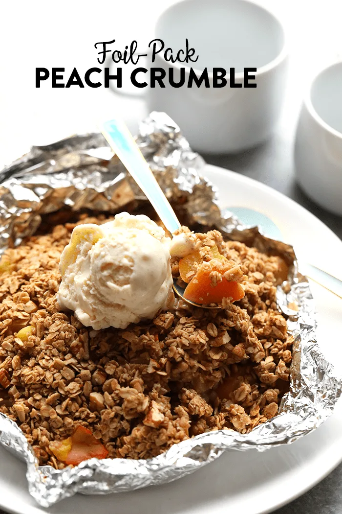 This  Foil Pack Peach Crumble – by Fit Foodie Finds is a camping dessert that you might not wait till you go camping to try. Â