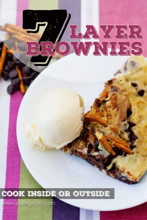 You may not be able to serve these Dutch Oven 7 Layer Brownies by Pulling Curls with ice cream at the campsite but you don't need to. They are amazing with or without ice cream.