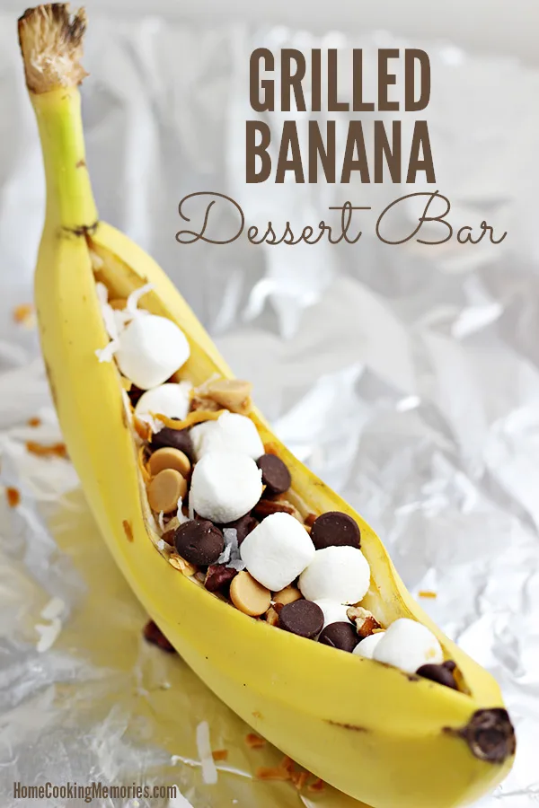 Set up a dessert bar and let everyone make their own Grilled Banana Dessert – by Home Cooking Memories.  Set out jars of goodies so that everyone can make their own individual special treat.