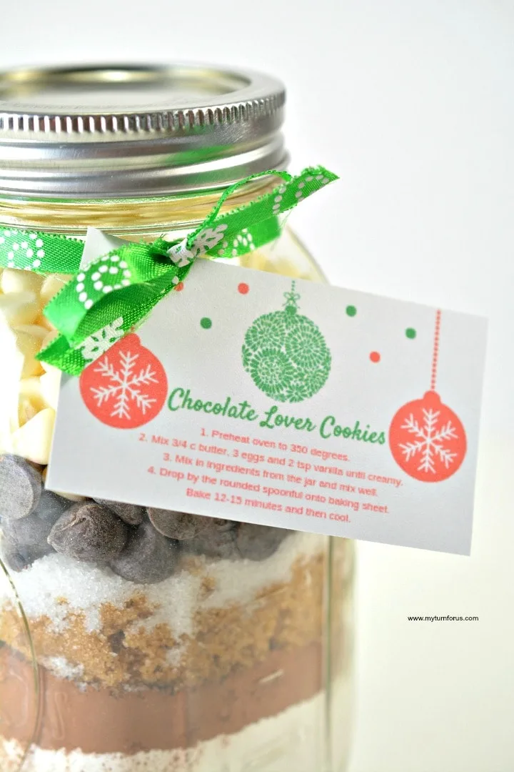 Delight your friends and family this season with this thoughtful mason jar cookie mix gift. Not only is it aesthetically pleasing, but the recipe is also simple, easy, and economical. This post also includes printable tags with the recipe instructions to attach to the jar. Our recipe guarantees delicious, soft, and melty triple chocolate chip cookies every time.