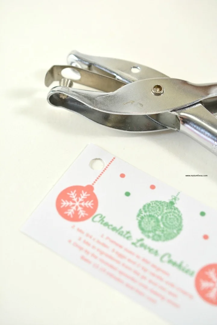 - Download and print the free Cookie Instructions & Gift Tags. Cut them out, punch a hole in the corner.