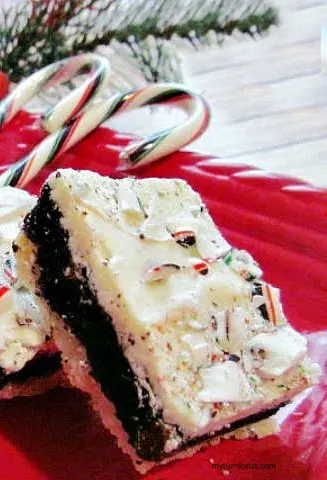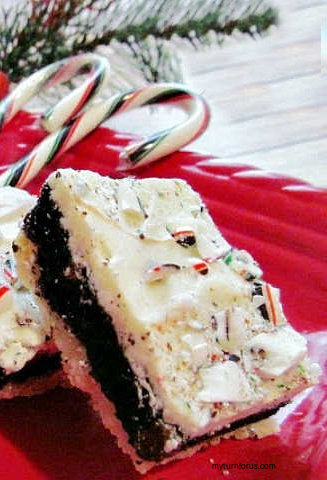 These bars are just extra special with all the layers and then the crushed chocolate peppermint candy canes. It is so worth the little extra work.