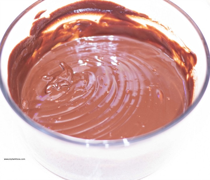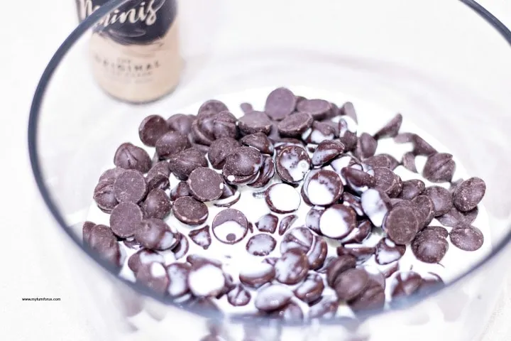 - Add the chocolate chips and cream to a microwave-safe dish. Heat on high for 40 seconds mixing well every 10 seconds, or until smooth.