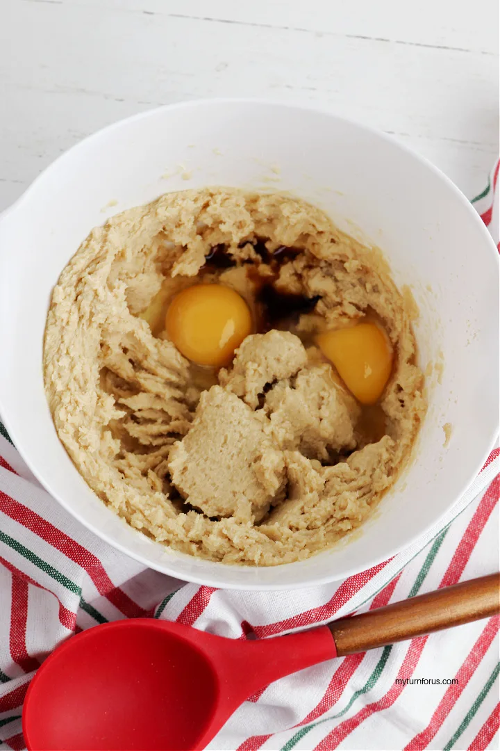 Add the vanilla and egg, then beat on medium speed until fully combined and the mixture looks smooth and creamy—about 30 seconds.