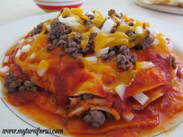 Stacked beef enchiladas Chihuahua style are easy and made to order. Layered or stacked enchiladas are made with our original enchiladas rojas recipe.