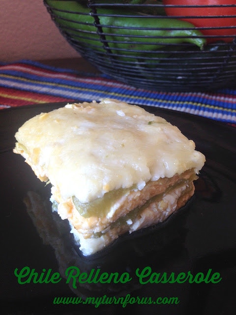 Hatch chile relleno casserole with two different cheese and plenty of Hatch Green Chile.
