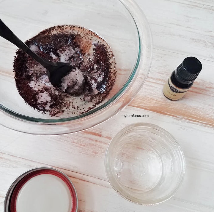 This is an easy coffee vanilla scrub recipe that would make great gifts. You can make this coffee scrub at home with our vanilla, coconut oil and coffee scrub recipe. This is inexpensive enough to use as a homemade coffee body scrub.