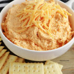 Serve this cold buffalo chicken dip with crackers or chips or  with  vegetables.  This is a gluten free buffalo chicken dip recipe that is so easy and so delish.   Great to add to your list of gluten free super bowl snacks or appetizers.