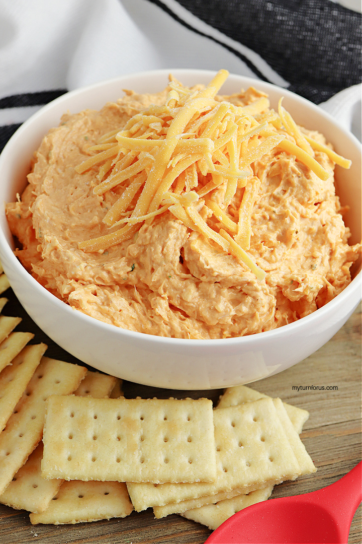 Serve this easy cold chicken dip with crackers, Fritos, tortilla chips or pita chips.  Plus if you are looking for gluten free super bowl snacks or appetizers then this dip is perfect served with veggies on the side.