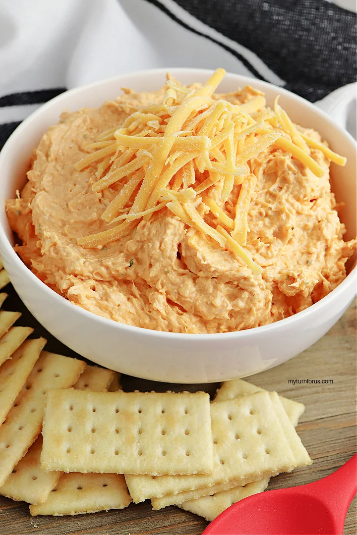 Serve this cold buffalo chicken dip with crackers or chips or even with veggies. This is a gluten free buffalo chicken dip recipe that is so easy and so delish.