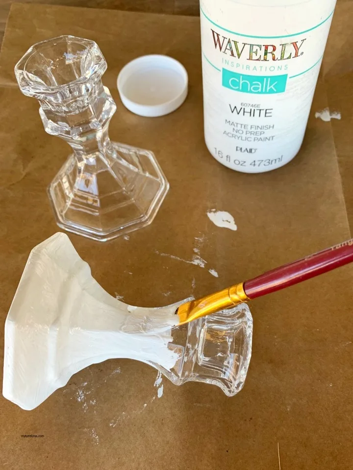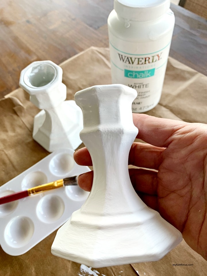 - Paint both candlesticks with Waverly® White Chalk Paint and allow to dry.