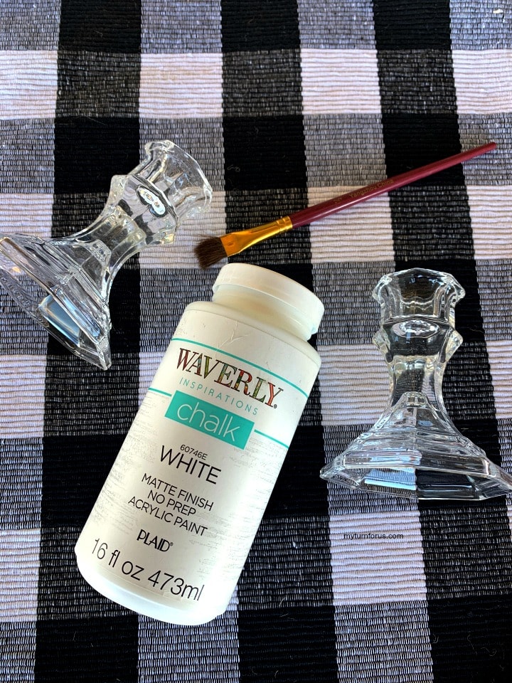 Paint both candlesticks with Waverly® White Chalk Paint and allow to dry.