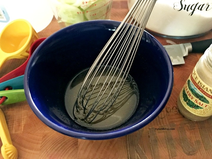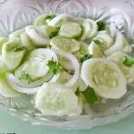 My mother used to make this easy dish of marinated cucumbers.   And her’s were always cool and crisp and were often in the fridge in the summer.  My mother would also use just about this same recipe for fresh shredded cabbage.   I remember whenever we visited my grandfather on his Arkansas farm, he would always ask her to make it.   She told me once this was exactly how her mother made cucumbers and the cabbage.    I’m experimenting with cabbage now and hopefully, I can replicate her recipe on that also.