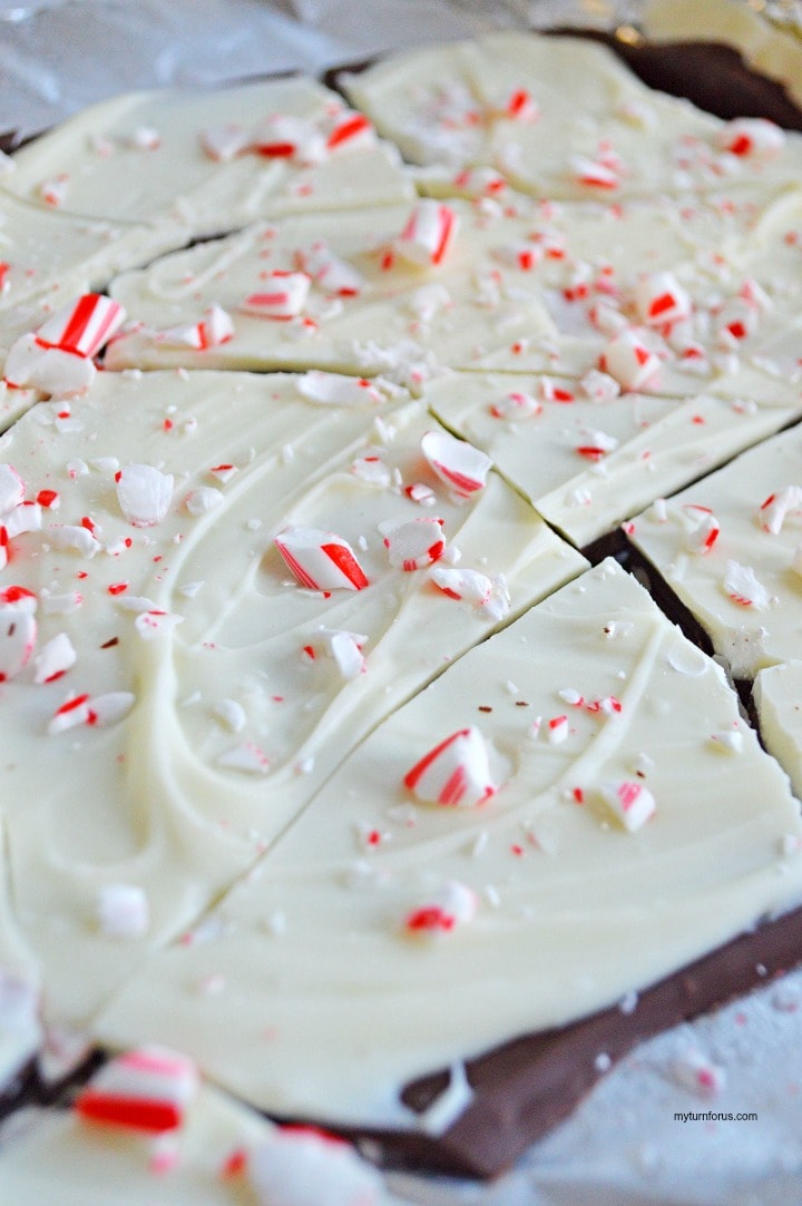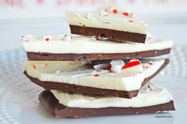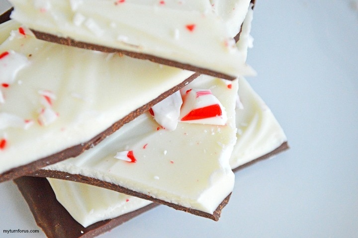 Click HERE to save this dark and white chocolate peppermint bark to Pinterest