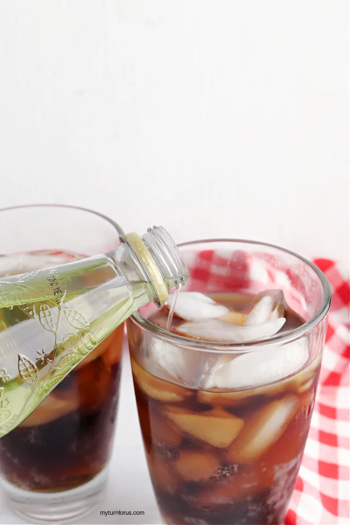 Dirty diet cokes are not really that new, they are been around for a number of years. And now that I think of it, didn’t Laverne on Laverne and Shirley drink milk and Pepsi? Ok, probable not a good example because that doesn’t sound great but I promise this, a dirty diet coke is sinfully delish. Sweet and caffeinated and goes down super easy. And if wish to go for the full monty then add a couple shots of rum!