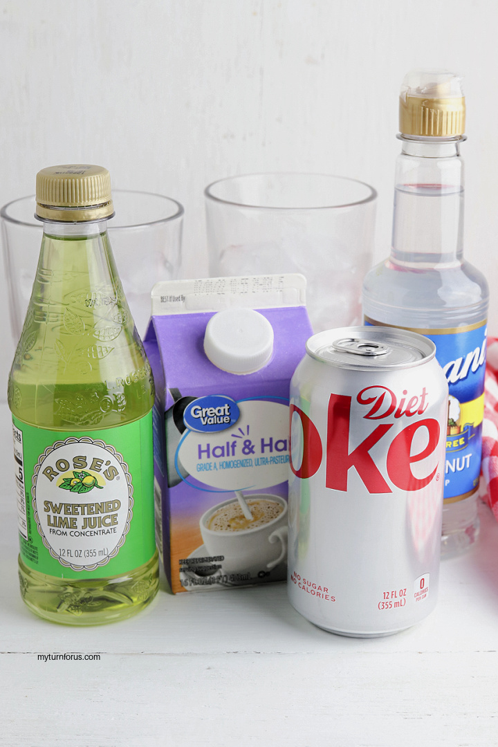 If you haven’t tried a dirty diet coke then you are in for an indulgent treat. Coconut syrup, lime juice and half and half added to diet or regular coke is the bomb!!