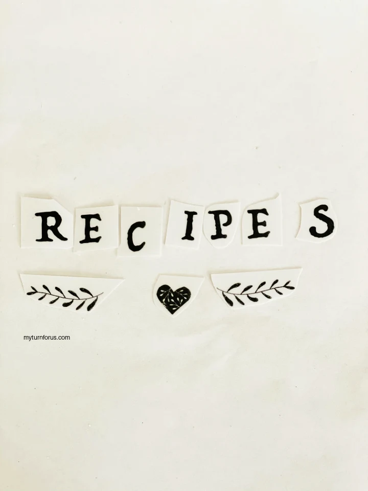 This little dollar tree recipe box craft is good for adults or children but younger children might need help in rubbing the letters. And you could personalize this by including a name above the “Recipes” letters such as “Evelyn’s Recipes”. We found these rub on letters at Dollar Tree but I know not every Dollar Tree has them. I did notice Amazon does have several different styles to choose from.
