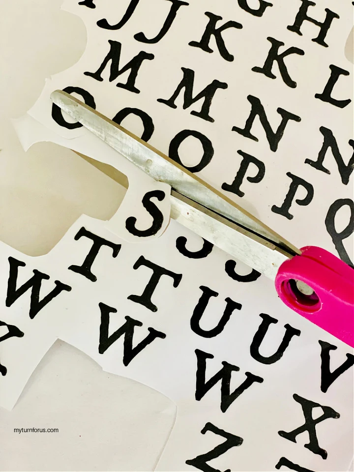After the crate is completely dry cut out the letters and designs of your choosing.