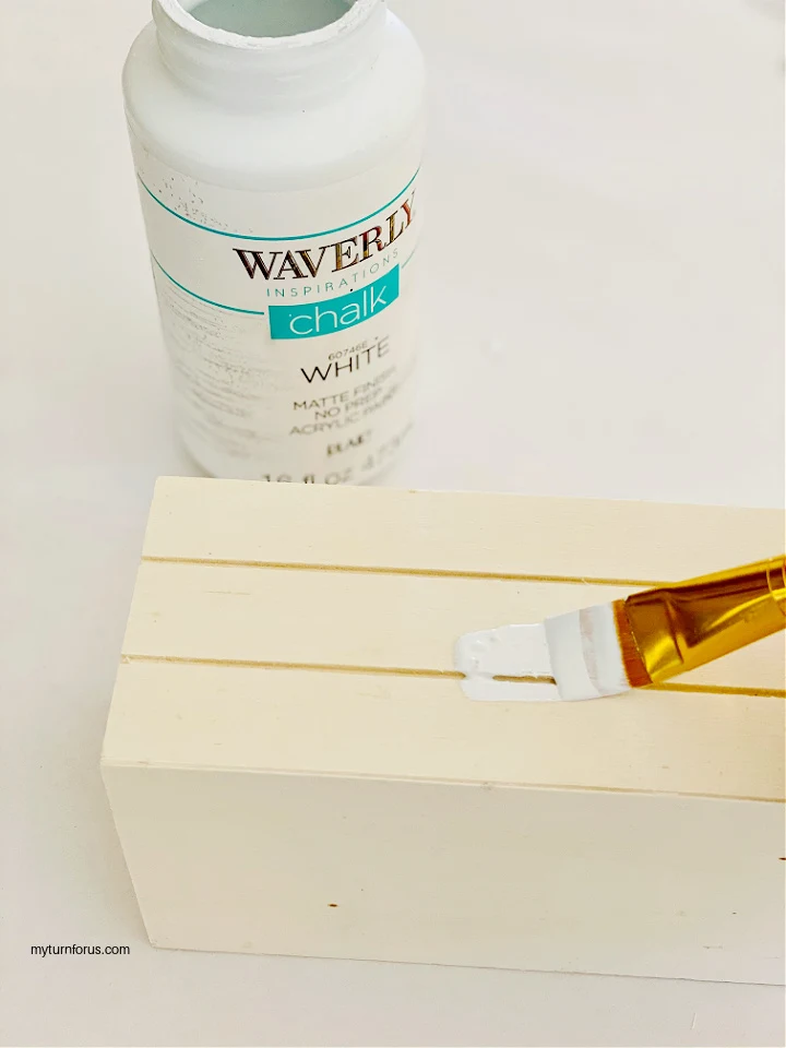 Apply 2 coats of the Waverly white chalk paint making sure to allow plenty of time to dry between coats.