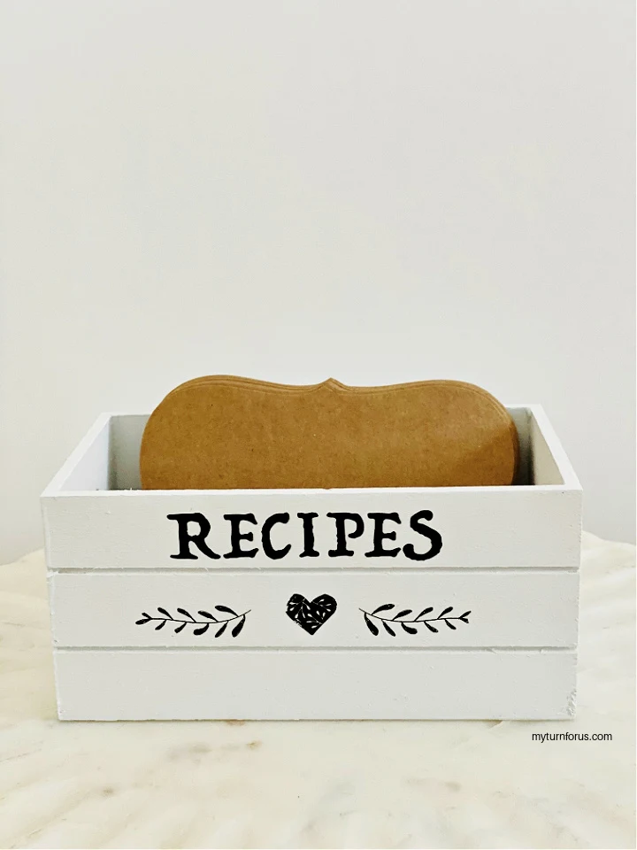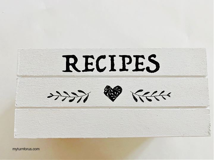 This DIY recipe box is super simple and makes a cute little farmhouse recipe box. This dollar tree recipe box is inexpensive and makes a thoughtful gift for Mother’s Day or any occasion.