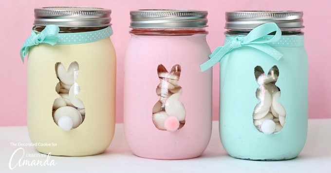 Use the free bunny printable to create these adorable Easter Bunny Mason Jars. No fancy machine needed, just a few supplies from the craft store and use these jars for candy or Easter decorations.