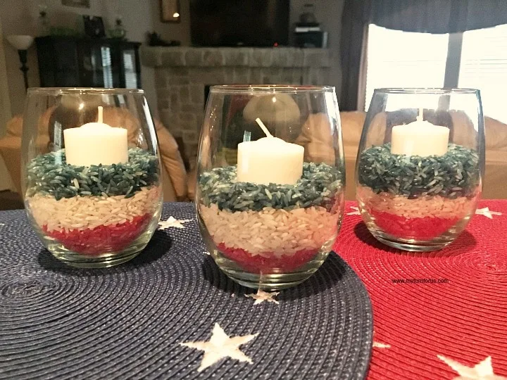 Red White and Blue Patriotic Colored Rice Candle Holders