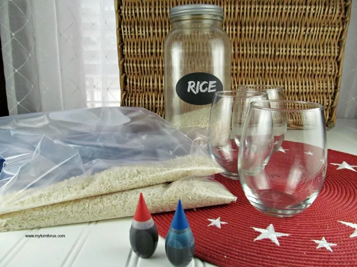 This is a great idea! I could definitely use this during my 4th of July celebration, plus the kids would get a kick out of dyeing the rice. So cute!